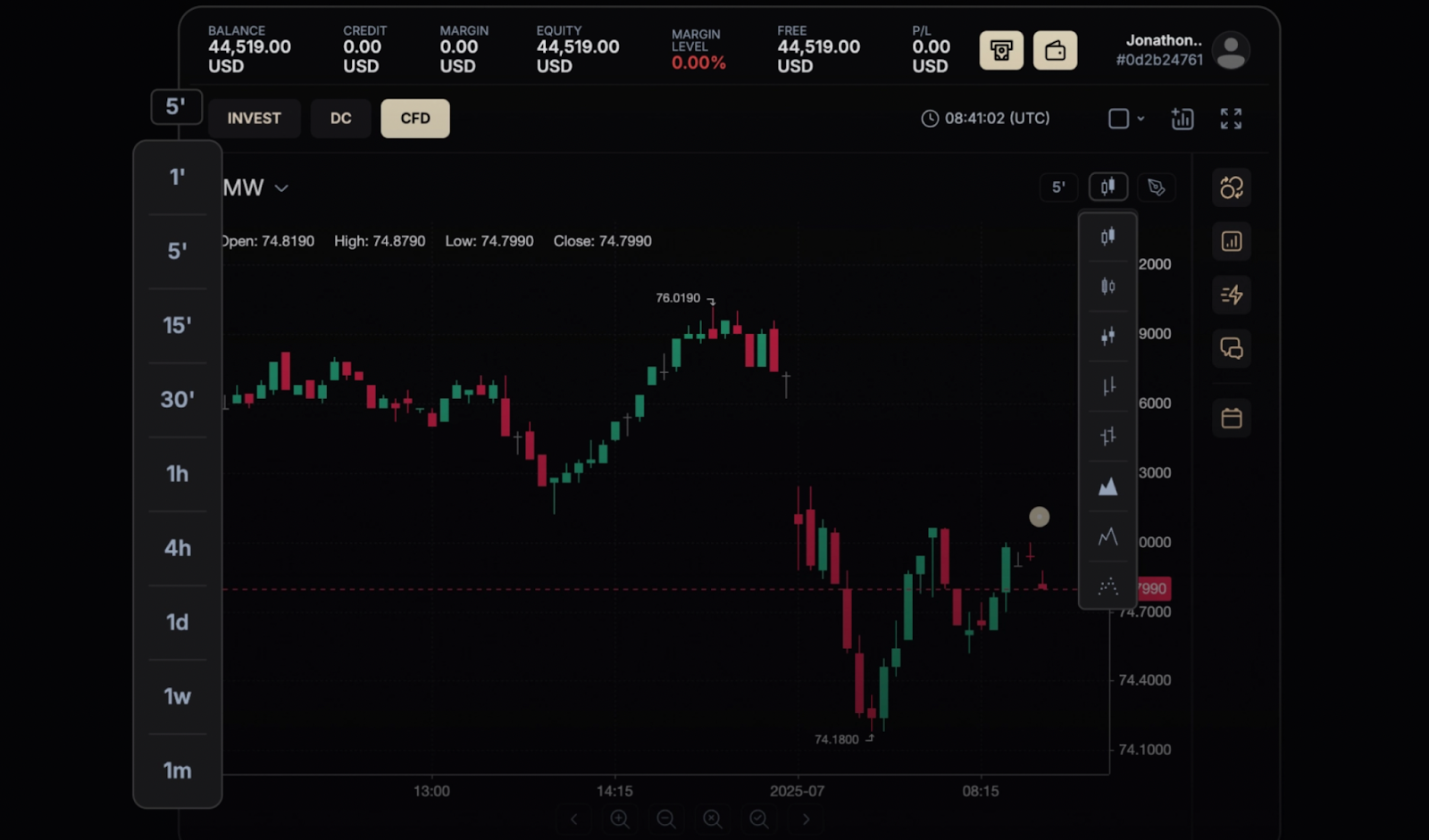 The charting setup uses intervals that users can adjust from one-minute snapshots all the way to monthly views. Switching between different timeframes takes one click instead of digging through menus. This speed actually matters when someone’s trying to spot patterns or check a theory.